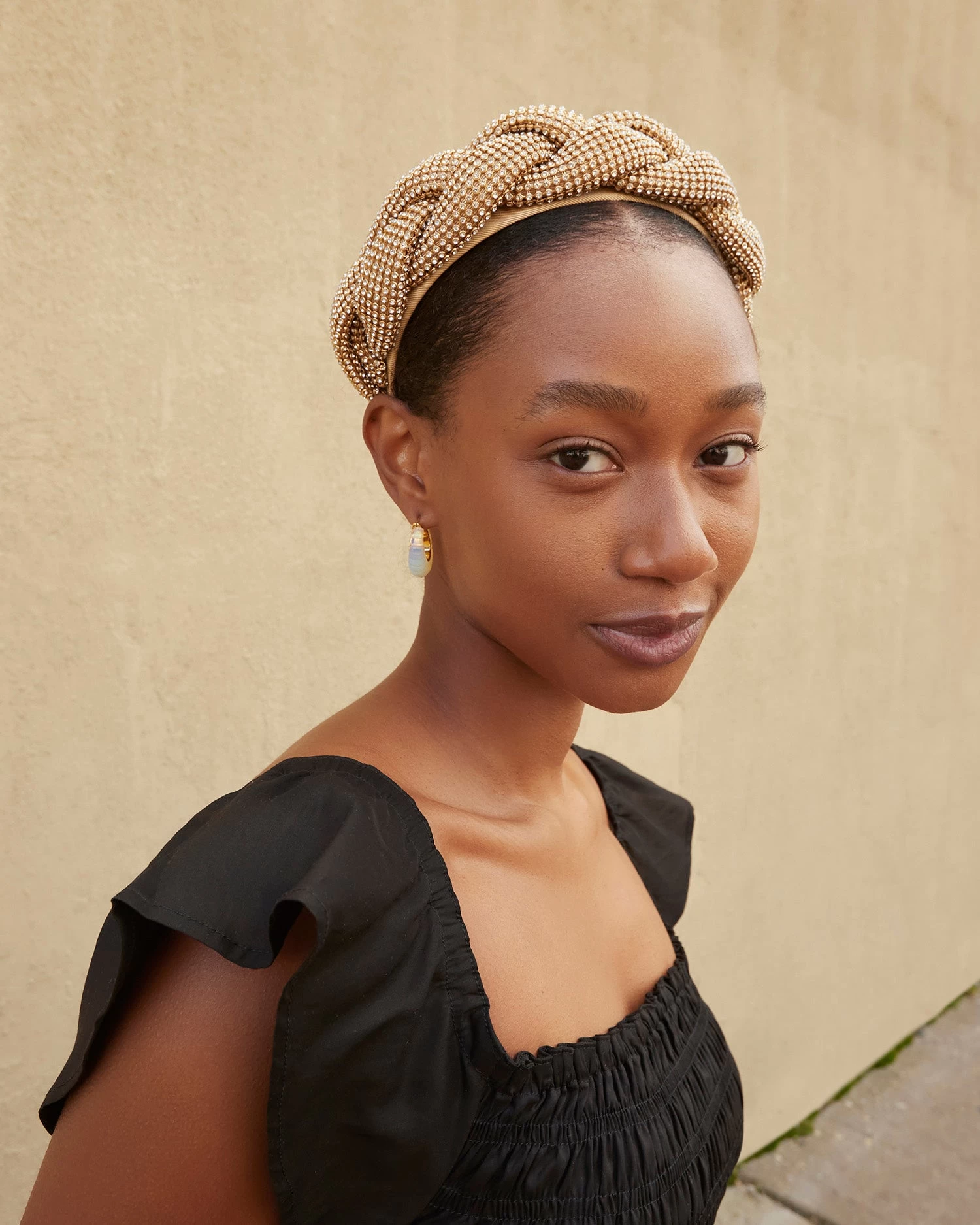 Loeffler Randall Bijou Gold Diamanté Braided Headband